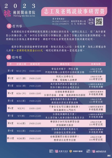 超級完整的培訓課程,從「跟小孩說台語的益處」、「爸媽如何用台語說故事」到「台語