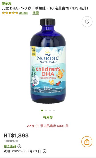 標題[寶寶] 在iHerb購買Nordic魚油標示錯誤