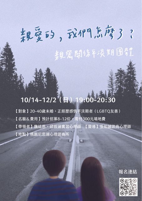團體資訊分享:《親愛的,我們怎麼了?-親密關係平淡期團體》