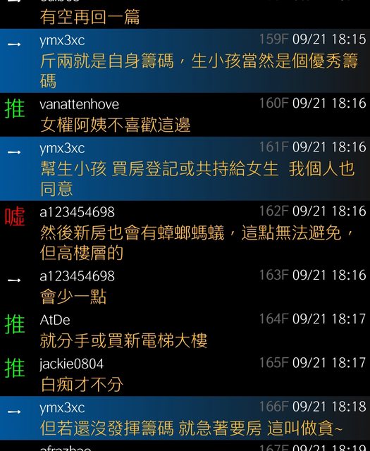 → demitri : 現在就是男女都退更多 男方家權力變小 女的也要 09/17 00:08