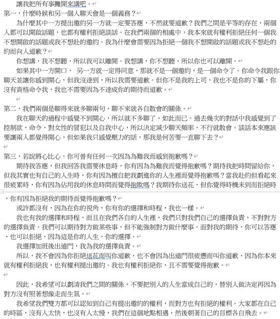 : 她似乎認為我該自動理解、修正,並認為聊天是為了開心,若過程不開心就不必聊了。我