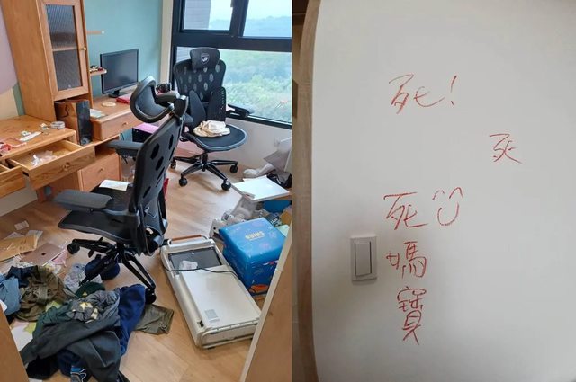 在她房間牆壁寫下