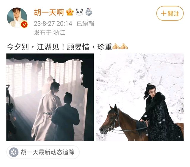 標題[情報] 胡一天 張婧儀《惜花芷》殺青