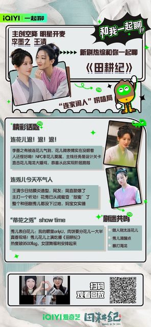 10月14日起,VIP會員每周六至周三19:00各更兩集鎖定 (首日VIP集,免費兩集)愛奇藝 田耕紀,有田有閒,撒歡搞錢! 《田耕紀》是由愛奇藝出品,中文奇蹟聯合出品 洪泠執導,金媛媛擔任編劇 大綱 本劇改編自作者弱顏的小說《重生小地主》,以宋代田園農耕生活為背景 ,講述了沈諾 與連蔓兒攜手智鬥親戚,種田經營,發家致富,並在過程中相知相愛的故事 。 家宅很寧版預告 https://video.weibo.com/show?fid=1034:4955954379423804 人物關係圖 https://i.imgur.com/yPNtgxX.jpg