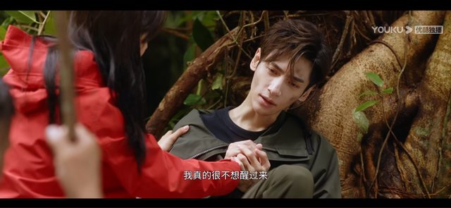 回到了野外生存的顧云崢因為太累了而睡著,女主獨自找著救援回來幫助顧云崢,終於回
