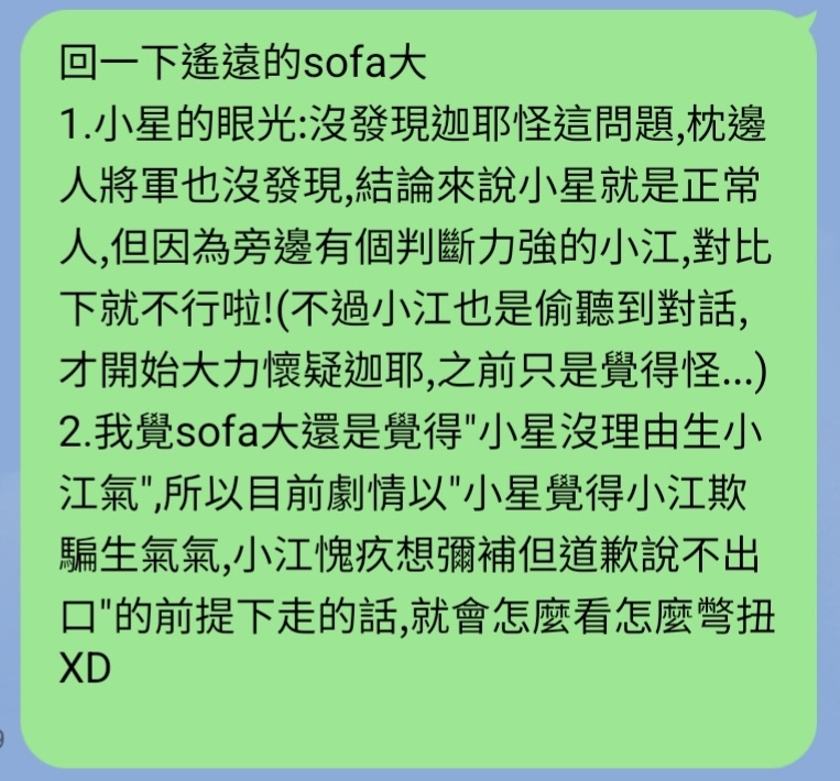 → beautifulday: 小星生氣小江就是對方不相信他 06/25 12:50
