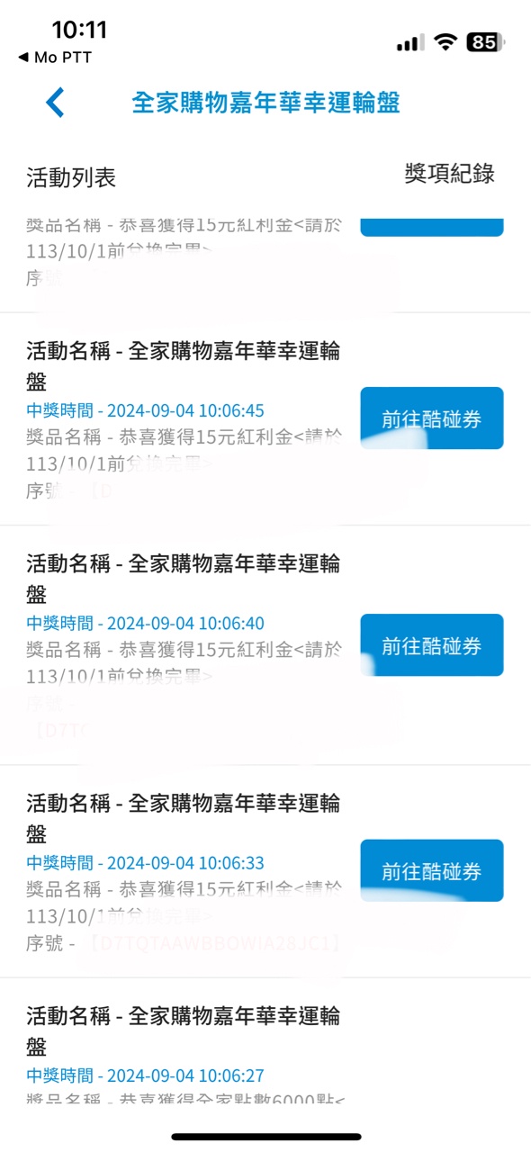 → BBFish55: 這幾天全家一起轉,hami點快換完了 59.115.161.155 09/07 09:19