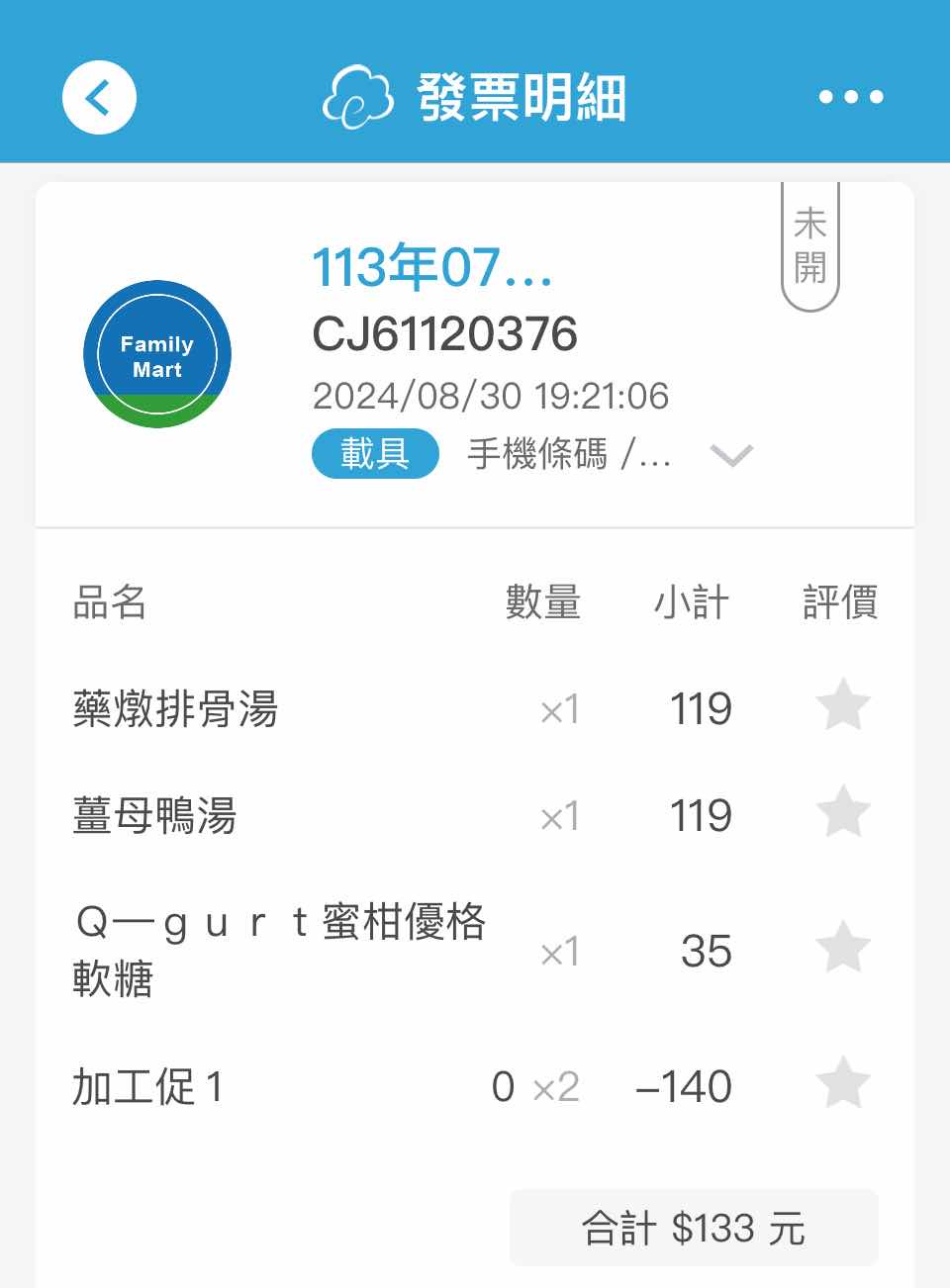 噓 satousei: 噓全家行動購 36.225.1.210 09/13 07:57