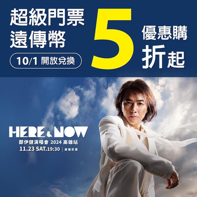 會《HERE & NOW 鄭伊健演唱會2024高雄站》,即將掀起極速傳說熱潮,演唱會門票將在