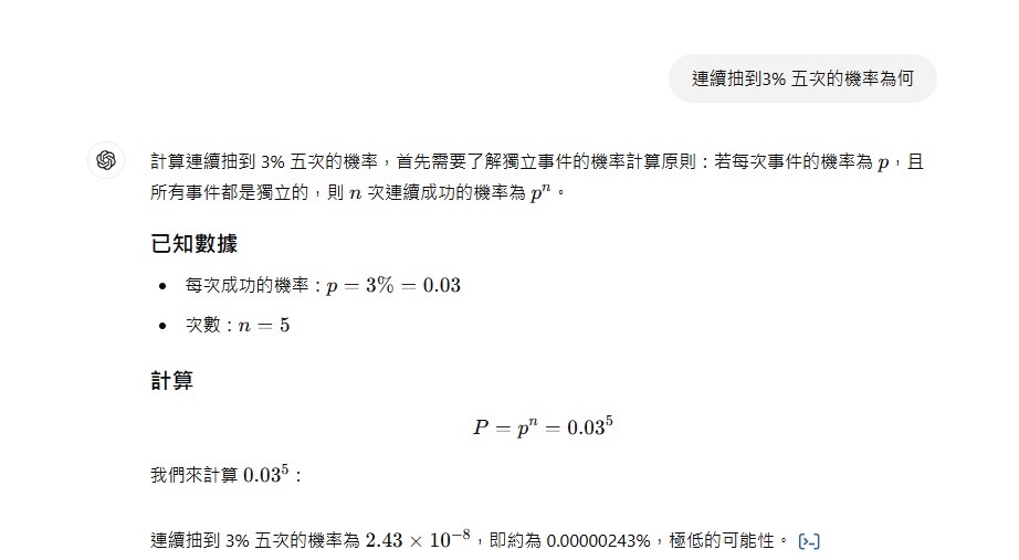 推 Hosimati: 有沒有統計學課本翻開一下,0.03連中527.247.0.159 01/22 11:46