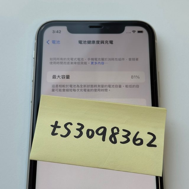 [型號] iPhone 11 256G 白 (A2221) [規格] 白色 256G [保固] 官網購買,已過保 [盒裝配件] 盒裝,無配件 [售價] 8000 不議價 **已售出** [交易方式/地點] 面交 / 雙北,限南勢角或忠孝新生捷運站、三創面交 [連絡方式] 站內信 / 可留 Line ID 會直接聯絡詳談 站內信無回覆代表已售出或已預訂 [商品照/補充說明] 有貼保護貼,功能正常,電池健康度81%,僅機身左上角有明顯傷痕