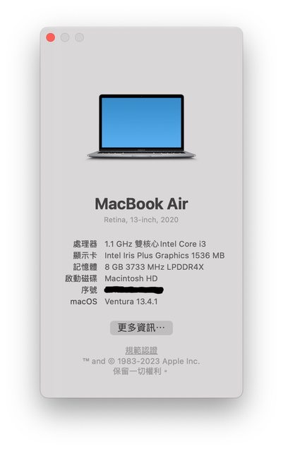 標題[販售]高雄 二手MacBook Air 2020 i3/8GB