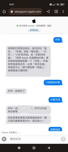 7/29詢問客服,電池健康度93%