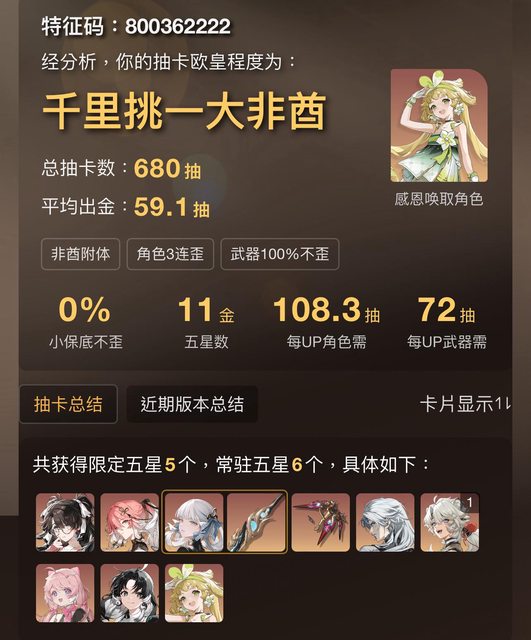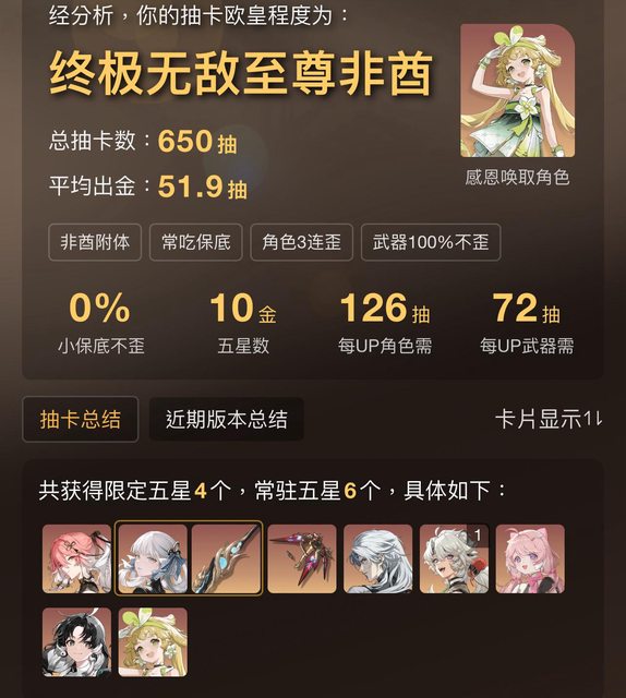 平均抽數因為多一隻五星所以倒退回去了