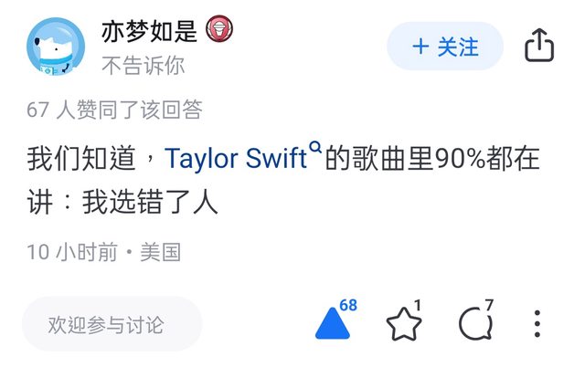 我們知道,Taylor Swift的歌曲裡90%都在講:我選錯了人。