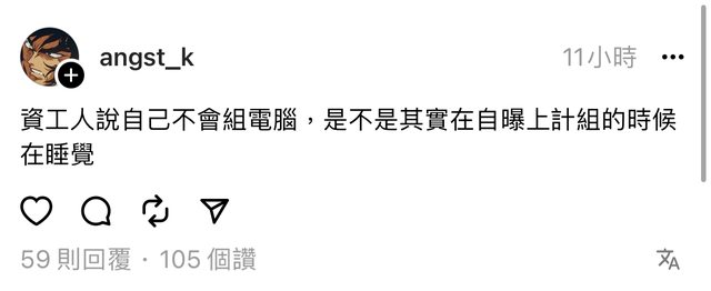“資工人說自己不會組電腦,是不是其實在自曝上計組的時候在睡覺”