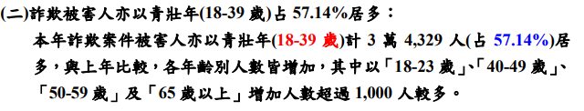 警政署統計一直都是18~39歲被騙到的最多,