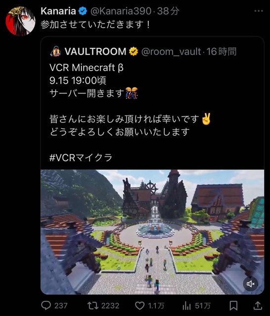 標題[瓦特] Kanaria參戰 VCR麥塊