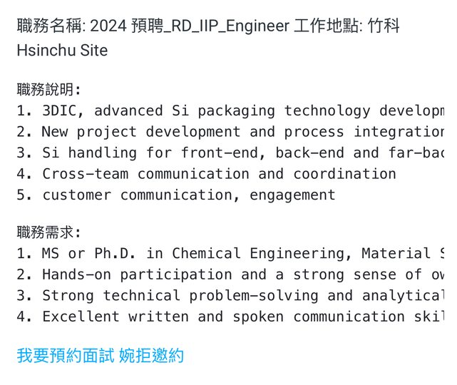 2.看起來是屬於後端的工作,雖然台積目前好像是想往這方面走,但不知道會不會整體發