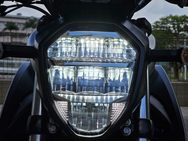 這顆八角形大燈有三層設計,近燈時是上下亮起,遠燈時是中間同時點亮。當然這台