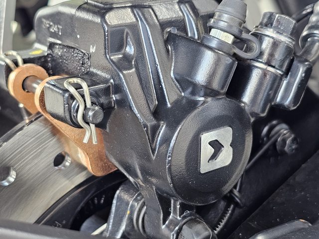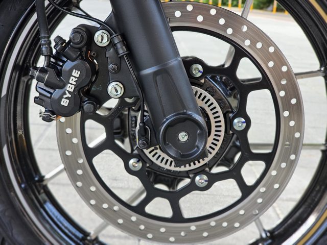 輪框採十幅切削設計+BYBRE單二卡鉗+300mm碟盤,並且配有ABS煞車防鎖死系統。聽過