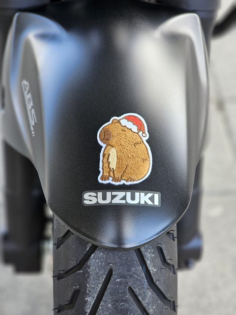 討論後覺得就貼在這裡也不錯,像是坐在SUZUKI貼紙上一樣,而且還可可愛愛與世無爭~