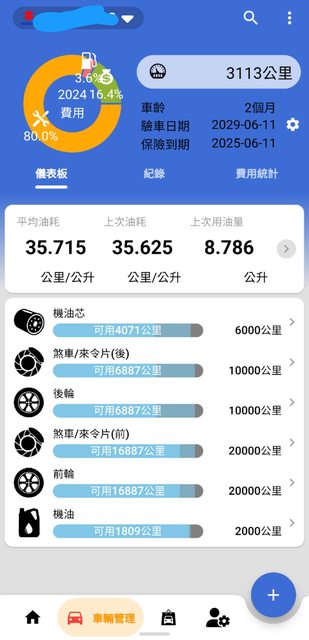 油耗的部份我很滿意,也有用愛車99 app紀錄,下面給你看看~