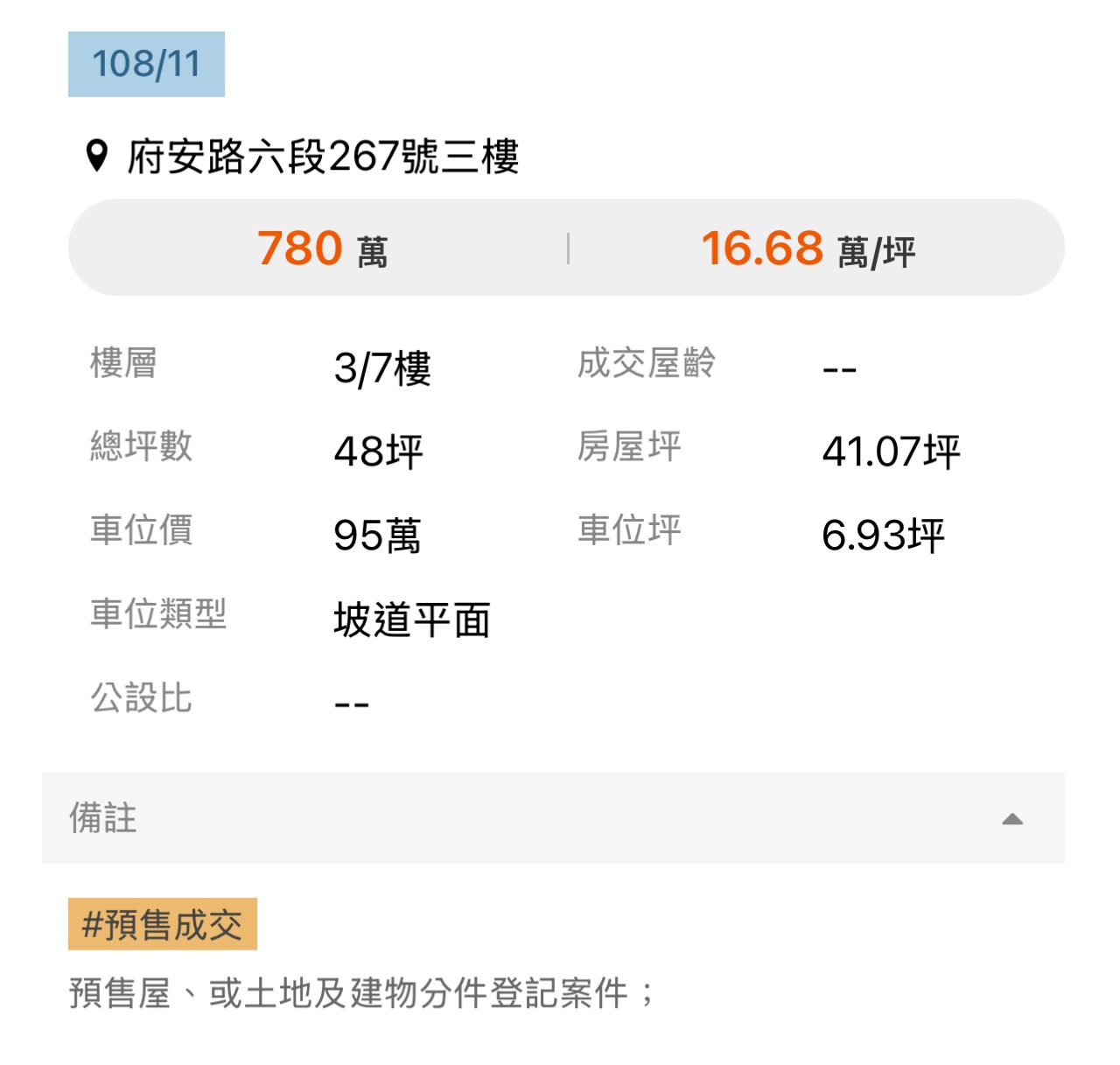 本物件兩年內上一筆實價登錄:無 (若有則不得併入前項)
