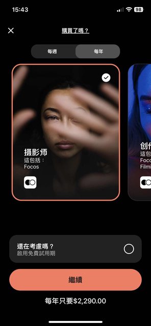 推 Andosinjo : 哇靠!我剛剛去試了一下,現在Focos竟然沒有買斷制 06/19 17:50