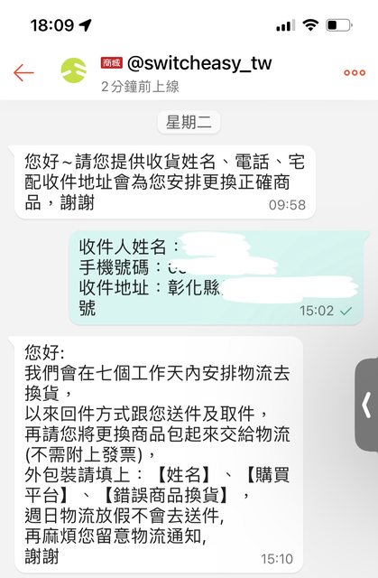 客服溝通態度很好 本來以為退換貨要分兩次