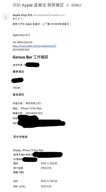 換好後,取件人員只說螢幕有額外的90天保固,