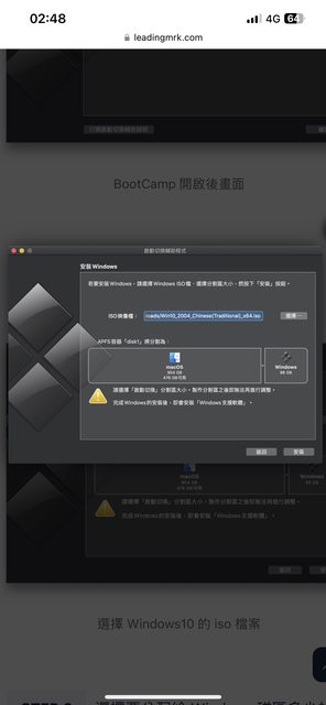 都圖文並茂的說明啟動boot camp之後下一步就是選擇下載好的”win10映像檔”