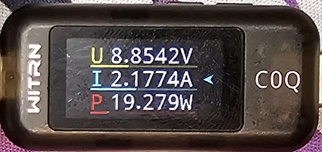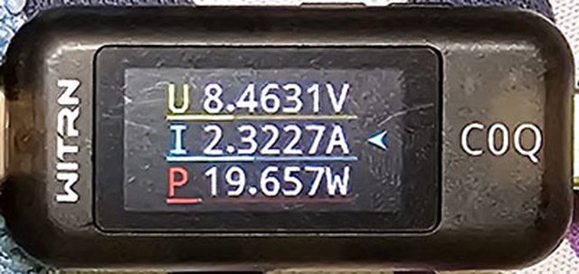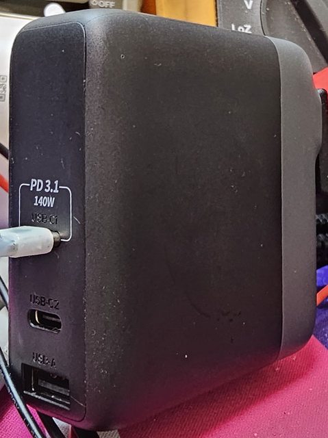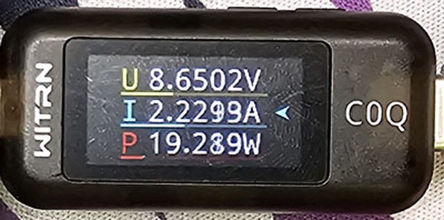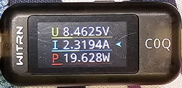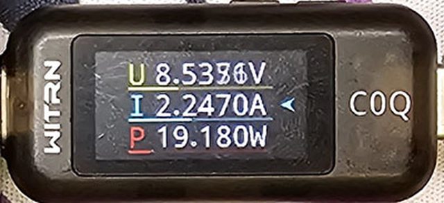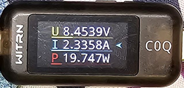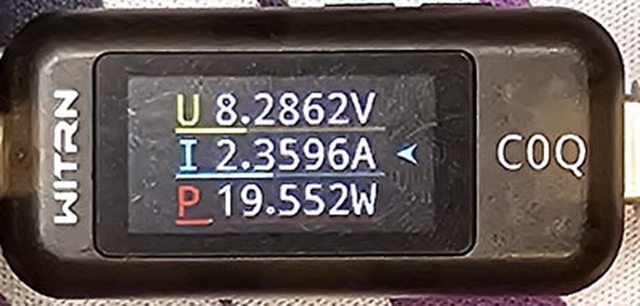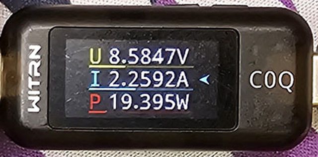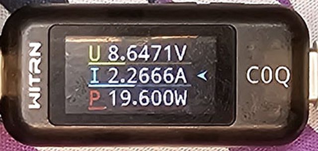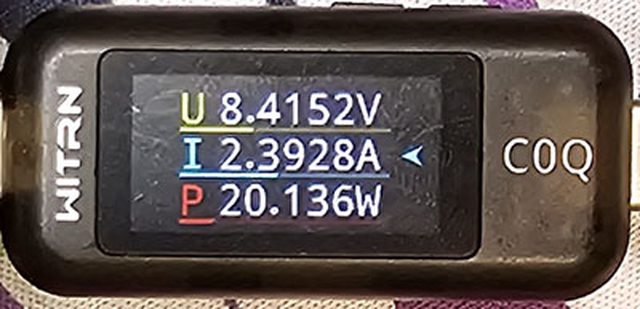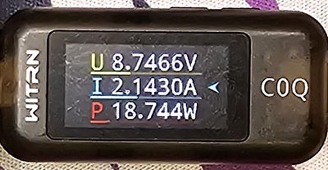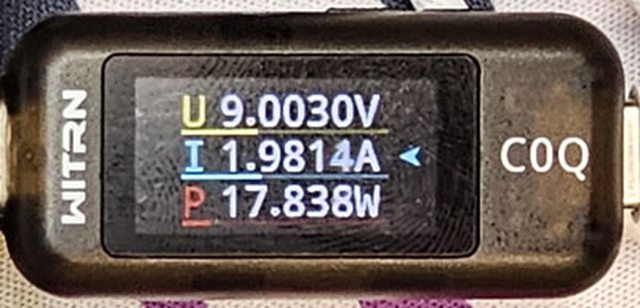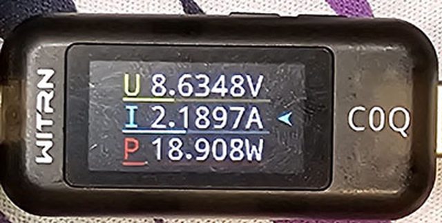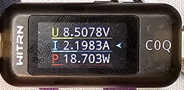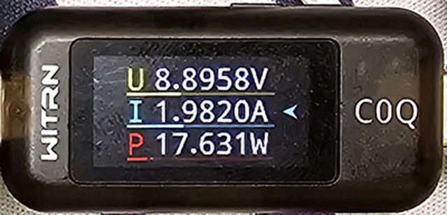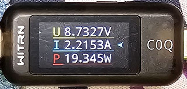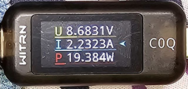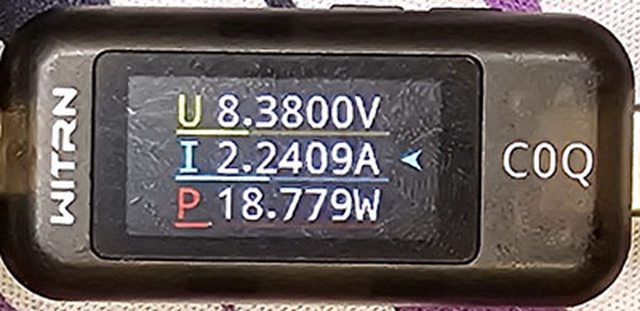 PRO隨附原廠線的USB-C接頭,原廠線另一端USB-C接頭接維簡C0Q電壓電流表(顯示輸入