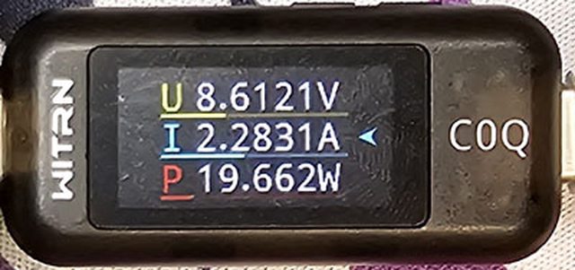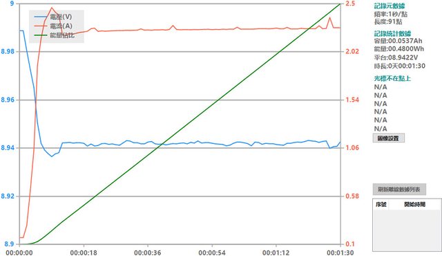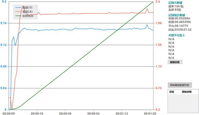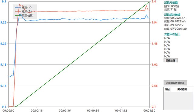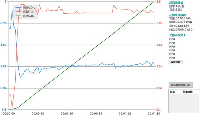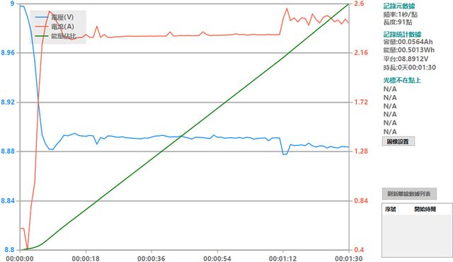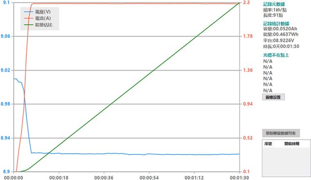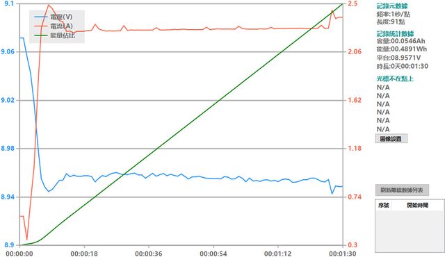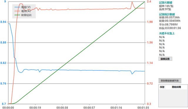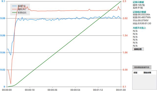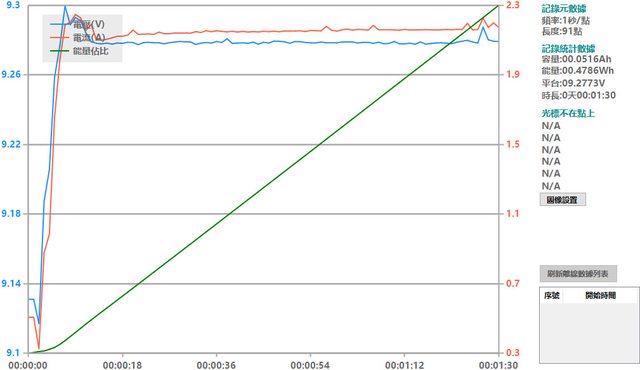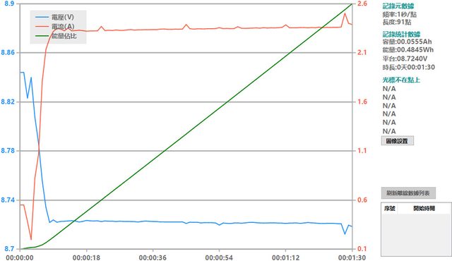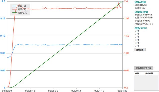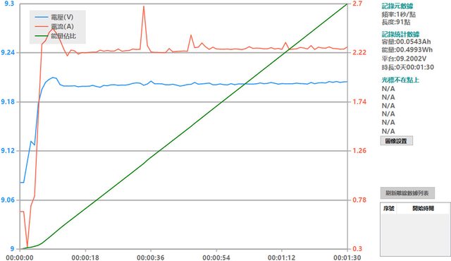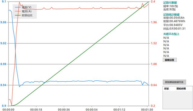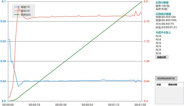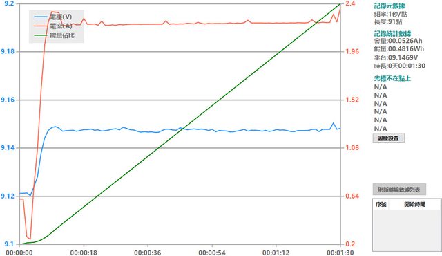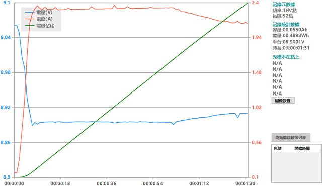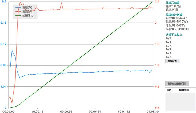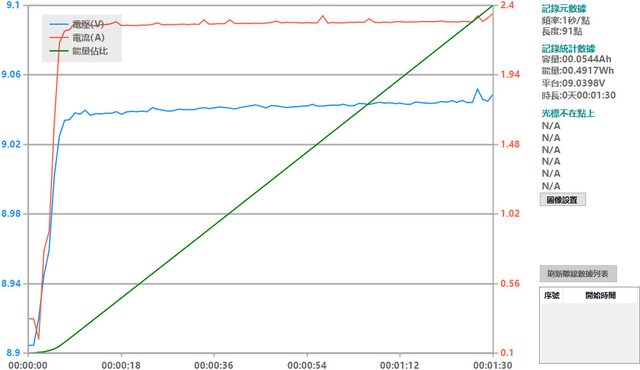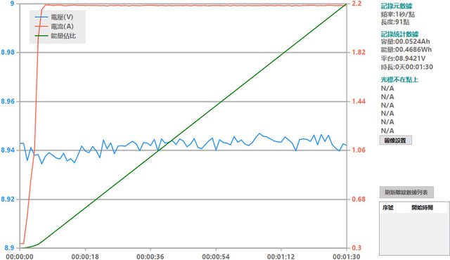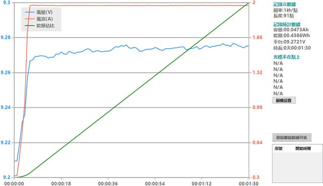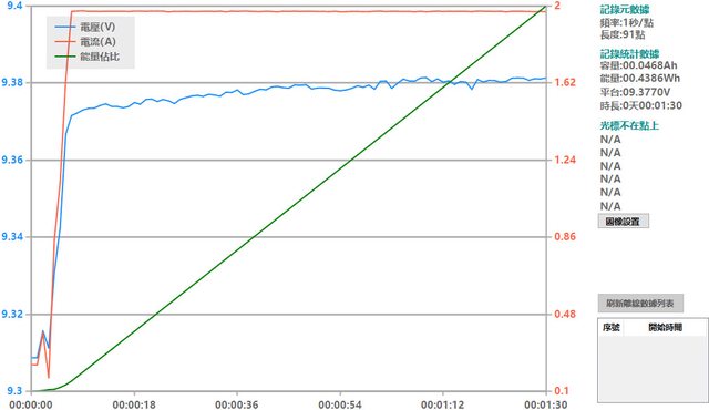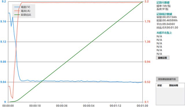 螢幕開啟時充電電流會稍微上升,可以從充電器輸出電壓電流圖表中的紅色曲線看到電流