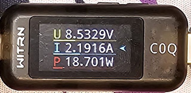 使用20W及以上充電器,螢幕關閉下充電電流會維持在2.1A至2.3A之間,使用更低輸出的