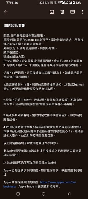 目前天才吧是說如果工廠檢測是電池膨脹導致的,會以$3350的電池維修價格來換整新機;