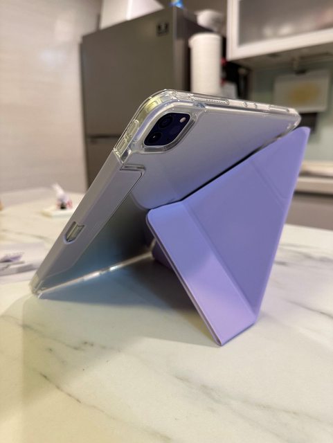之前就用過沒辦法直立的殼,這款折法比較多樣可以立起來