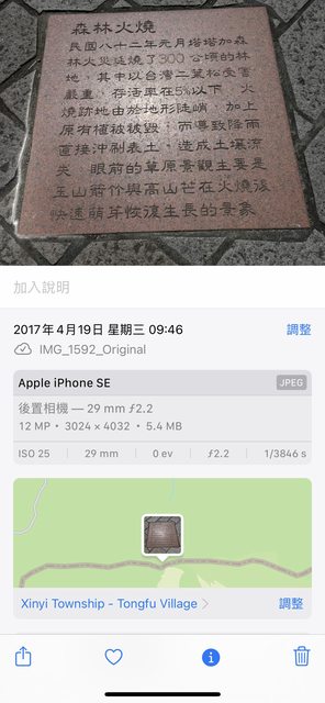 有些照片的地點會變成英文,但在改回臺灣之後拍的照片地點都是中文,只有之前有些