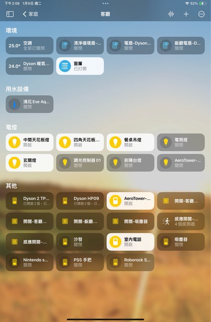 要自己搞的話,要讓家電自動化才算智慧居家,我只是剛入門,先盡量把設備都加入HOME
