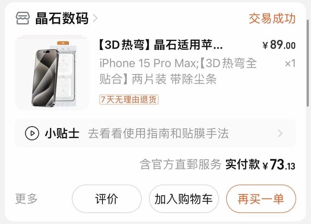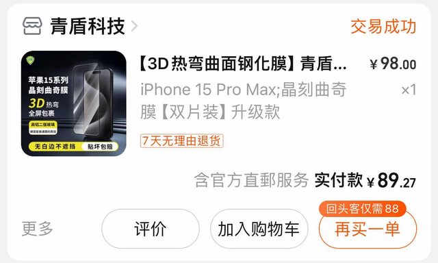 難道我以前手機用過閃膜 benks我覺得不好用不能買別款嗎? 一定要推閃膜benks嗎? 你有沒有想過我為什麼跳過? 我跳過就說明了 我以前用過我覺得不好很難理解嗎? 我為什麼要分享黑邊 因為太多爛的保護貼黑邊就是會遮擋15pro系列的螢幕懂嗎? 然後我不是什麼YouTuber或是部落客 我就是一個普通的手機重度使用者 我就喜歡買很多膜來試 我花自己的錢難道還需要問過你? https://i.imgur.com/ThXc792.jpeg
