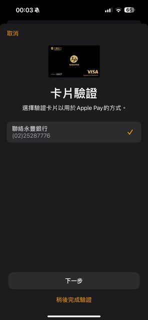 標題Re: [問題] apple watch的apple pay只能電話驗證