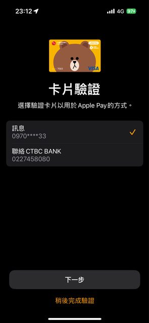 : 換新手機後重新驗證apple pay