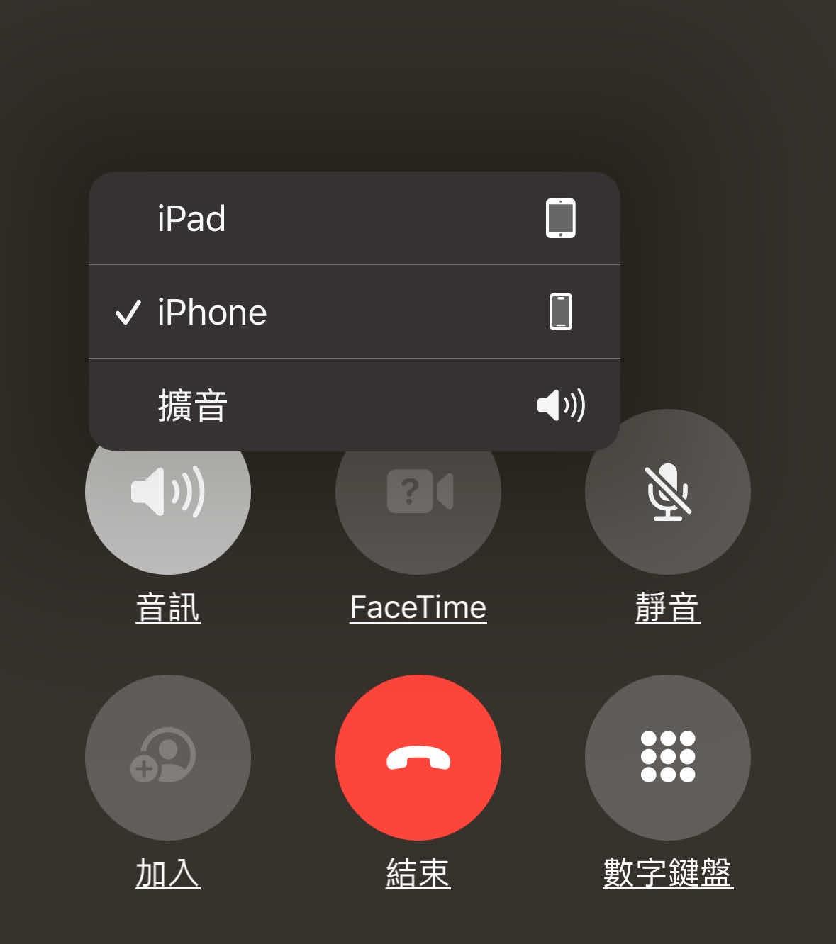機的時候跳出 要擴音還是IPad的選項