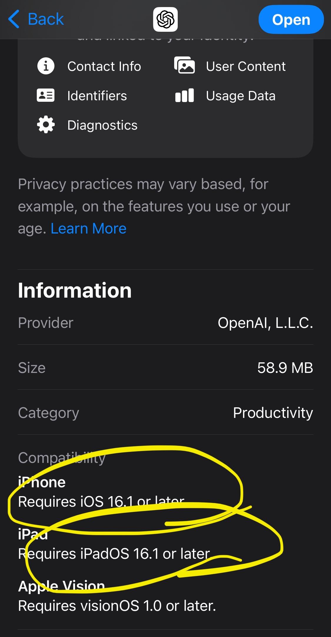 有試過家人的iPhone12 iOS 16.1是可以看得到很正常的ChatGPT的