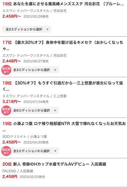 標題[情報] FANZA 通販部門 2023年上半期作品排名