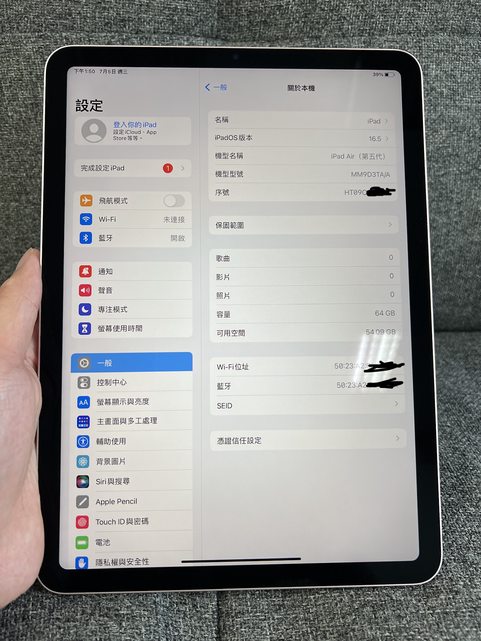 欲售物品:iPad Air 5 64g wfi版 粉色 原廠整新機