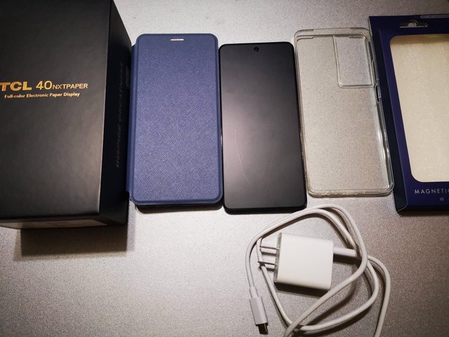 盒裝內含: 盒子,充電器跟線,透明背蓋1個,藍色保護皮套1個