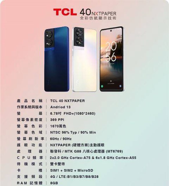 欲售物品:tcl 40 nxtpaper 256G rom 8g ram 藍色