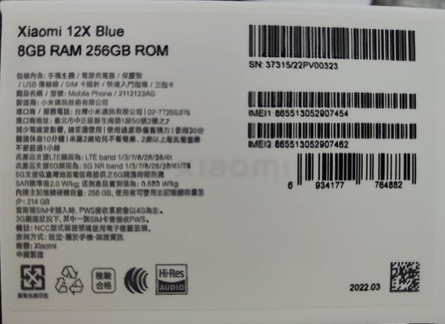 標題[賣//] 小米12X 淡藍色/竹科附近/面交
