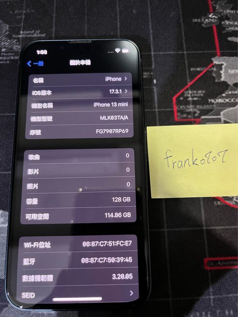 欲售物品:iPhone 13 mini 128G 黑 物品狀況:正常使用痕跡,電池健康度83%,正反面螢幕及鏡頭皆有貼保護貼 購買來源:二手購入 NCC 認證:CCAI215G0100T4 盒裝內含:原廠盒裝配件齊全,線未使用過 購買日期:2023/12/10二手購入 保固日期:過保 購入價格:13,000 欲售價格:11,500 交易方式:面交(蘆洲三民高中捷運站,雙北可以討論)/寄送(其他地方711賣貨便) 實品圖片: